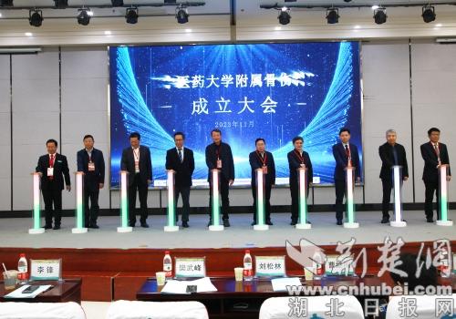 隨后,湖北中醫藥大學校長劉松林,襄陽市衛健委黨組成員、副主任樊伍峰,華中科技大學同濟醫學院附屬同濟醫院、湖北省醫學會骨科分會主任委員李鋒教授,華中科技大學附屬協和醫院骨科醫院院長楊操教授,武漢大學中南醫院光谷院區院長、湖北省醫師協會骨科醫師分會主任委員蔡林教授,武漢市第四醫院(武漢市骨科醫院)院長夏平,武漢中西醫結合骨科醫院院長李緒貴,襄陽市第一人民醫院黨委書記廉凱,襄陽市中醫醫院黨委書記皮紅林,襄陽市中醫醫院黨委副書記、院長宋俊共同按下能量柱,湖北中醫藥大學附屬骨傷科醫院正式成立。