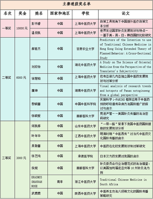 附件:“同仁堂國藥杯”第五屆全球大學生中醫藥國際化征文活動獲獎名單
