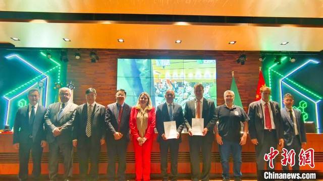 圖為四川省中醫藥管理局與巴西中國友好協會在研討會上簽署了傳統醫藥合作備忘錄后合影留念