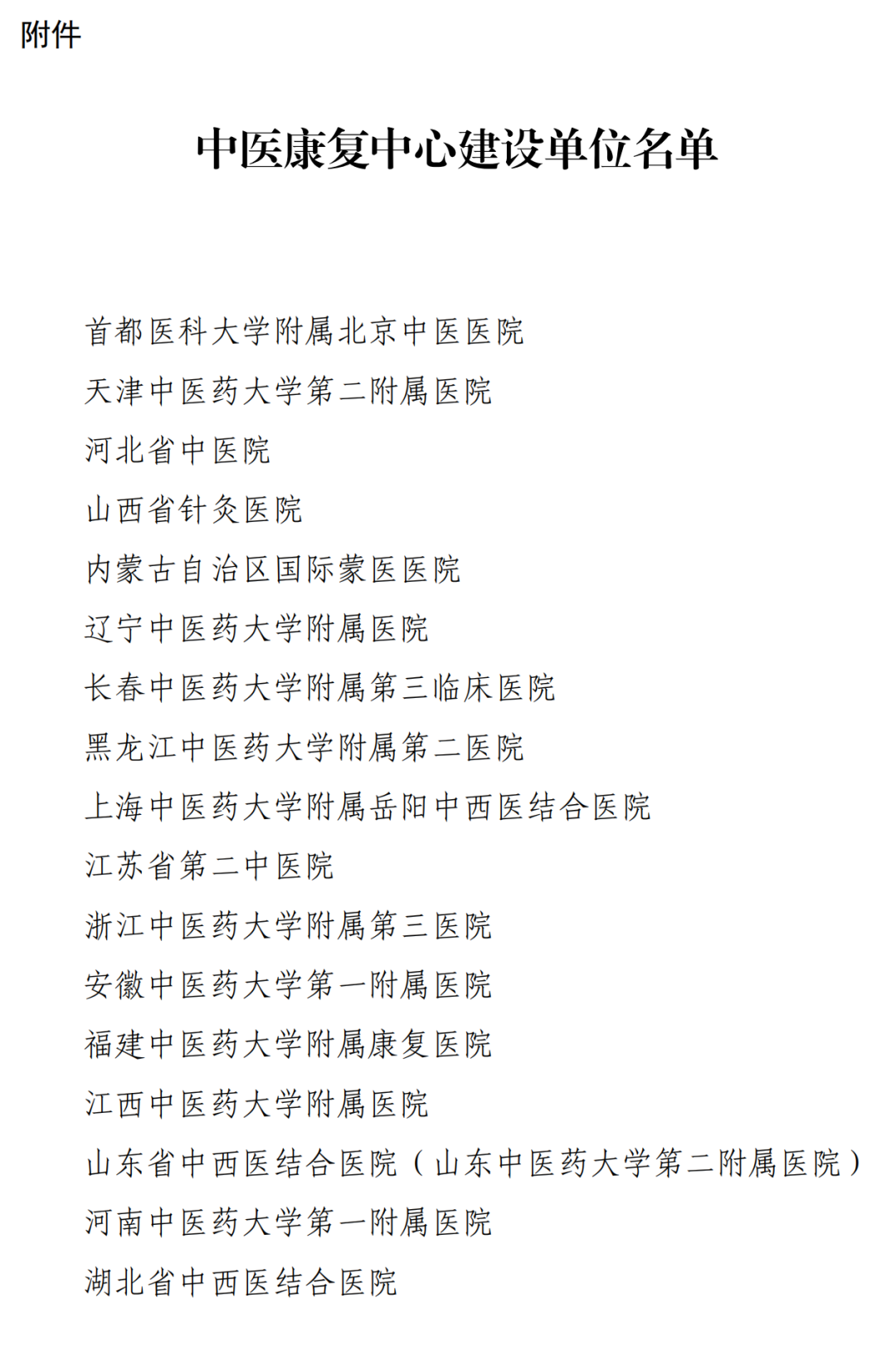國家中醫藥管理局公布中醫康復中心建設單位名單