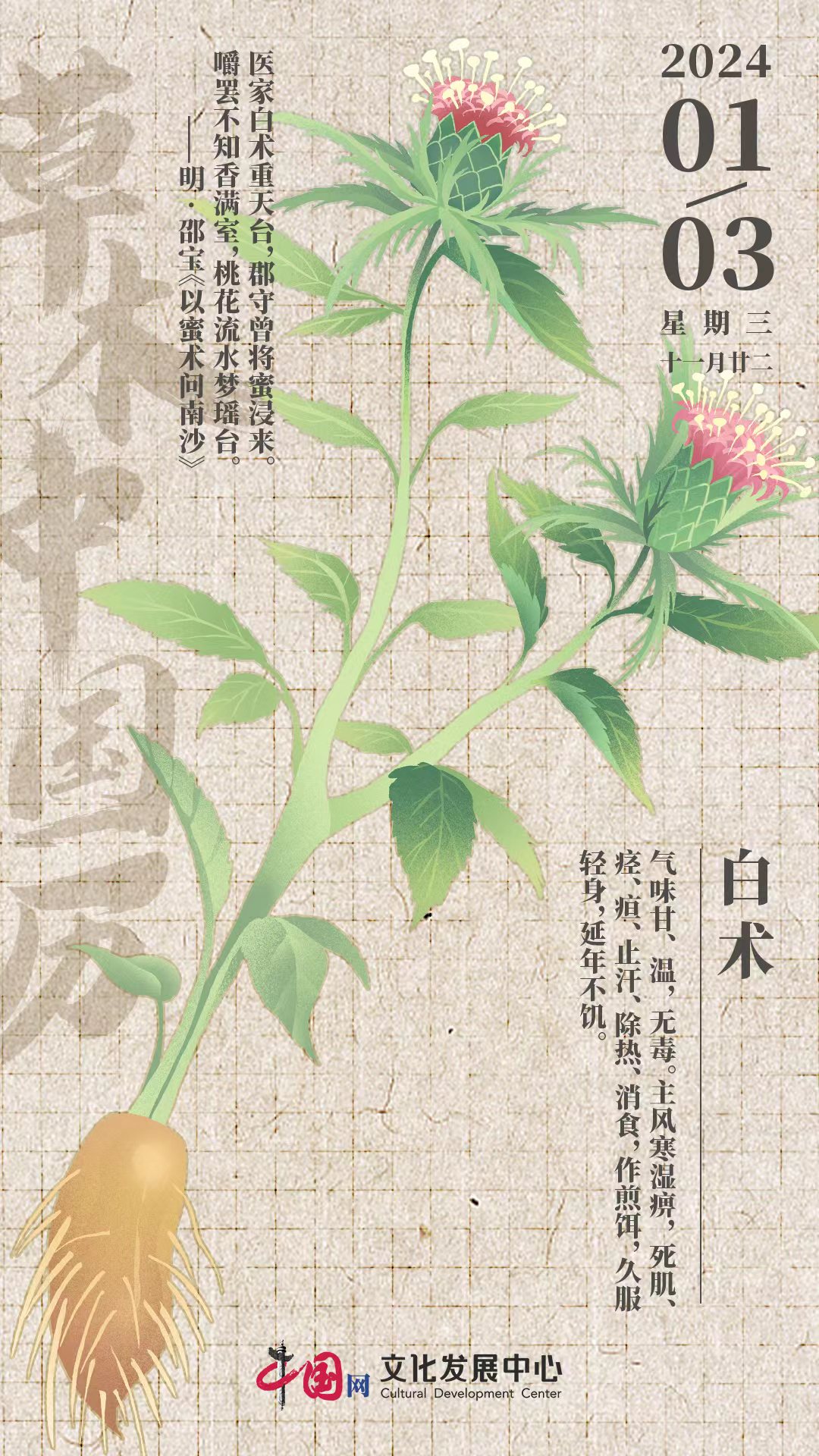 【草木中國歷】 2024年1月3日農歷十一月廿二 |白術