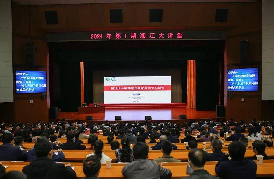 中國網中醫訊 1月6日上午,2024年第1期“湘江大講堂”在湖南省委黨校舉行,中國工程院院士、國醫大師張伯禮應邀作專題講座。參加講座的有湖南省委書記沈曉明,省委副書記、省長毛偉明,省政協主席毛萬春,省委副書記李殿勛等現職省領導,省直各單位、駐長省屬本科高校、省屬企業相關同志,省委黨校有關班次學員。