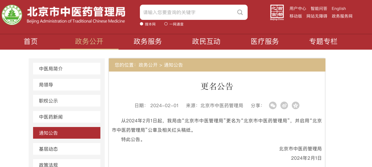 “北京市中醫管理局”更名為“北京市中醫藥管理局”