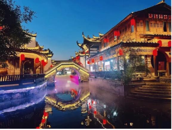 隨后來到“夢里水鄉、銅陵西塘”的犁橋水鎮。這是一個依水而建的徽派景區,小河彎彎,街巷縱橫,粉墻黛瓦,翹角飛檐,顧客們置身其中,走走石板路,聽聽水聲,感受濃濃的江南水鄉氣息。