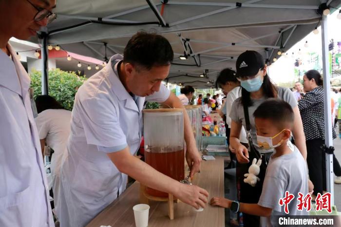 山東中醫藥大學附屬醫院醫生在夜市上發放代茶飲
