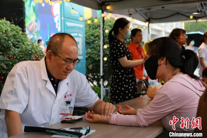 在淄博市張店區,由當地醫院舉辦的中醫藥健康夜市體驗活動也引民眾就診、咨詢、體驗不斷。10余名中醫專家為居民把脈問診,提供健康咨詢和義診,普及中醫養生知識,進行中醫保健指導。醫護人員免費為民眾提供針灸、推拿、耳穴壓豆等特色服務,并贈送醫院精心配置的清熱解暑中藥茶飲。