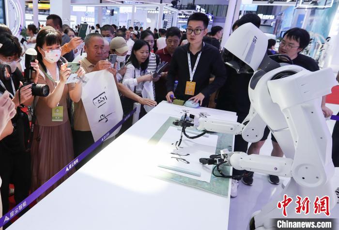 做咖啡、攤煎餅、榨果汁、疊放衣物……機器人越來越成為生活“多面手”和日常好伙伴。在星塵智能公司展區,一人形機器人正手握毛筆進行書法表演,快速寫出了“北京”“中國智造”等漢字,頗具韻味。
