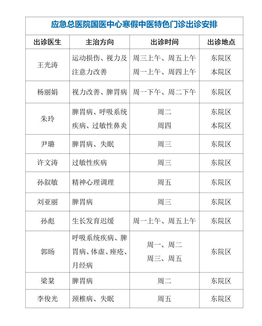 應急總醫院國醫中心開設寒假中醫特色門診:為兒童青少年健康充電,迎接新學期