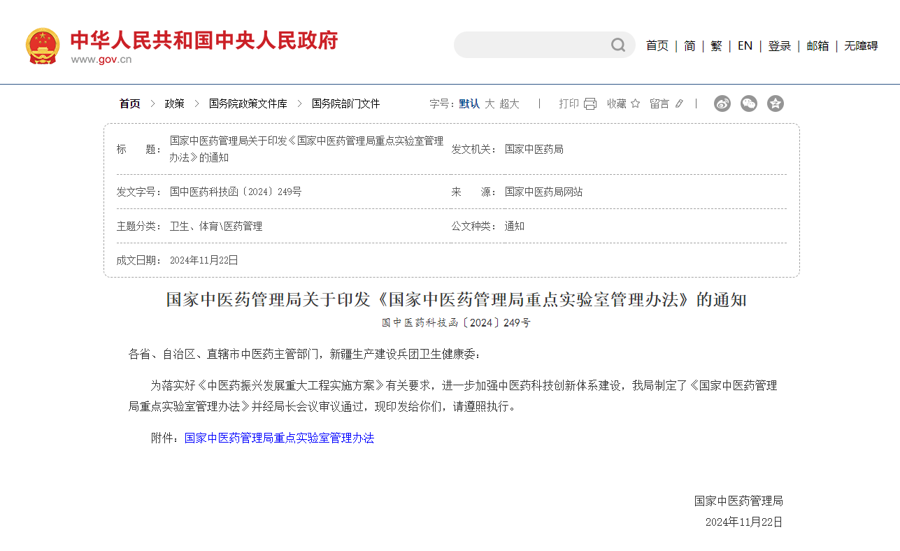 《國家中醫藥管理局重點實驗室管理辦法》全文