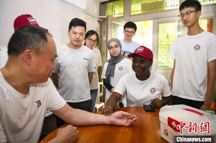 中新網溫州7月14日電(周健 陳小樂 王安)或持艾條在后頸輕旋,或沿頸椎經絡緩緩刮痧,或將玻璃罐扣在酸痛肩頸處……近日,在浙江溫州文成縣周壤鎮,一場特別的中醫藥義診舉行。來自溫州醫科大學的留學生們不僅沉浸式體驗針灸、推拿等中醫藥適宜技術,還親手拿起刮痧板、點燃艾條、操作拔罐器,為當地村民提供中醫理療服務。