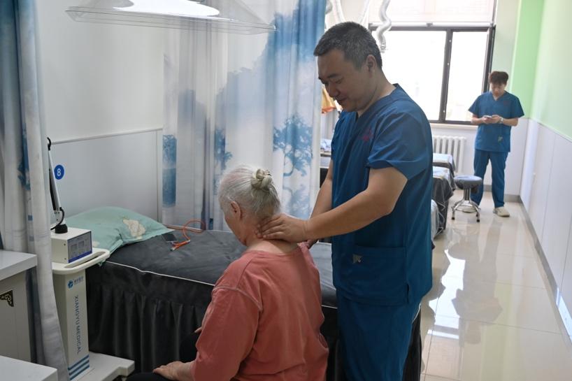走進黑河市中醫醫院,一股濃烈的艾草香撲面而來,74歲的瓦倫蒂娜·尼古拉耶夫娜·伊萬諾娃正坐在椅子上閉目接受按摩治療,時不時因為按中肩頸穴位而微微皺眉。