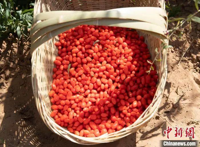 嬌艷欲滴的頭茬枸杞。中新網記者于晶攝