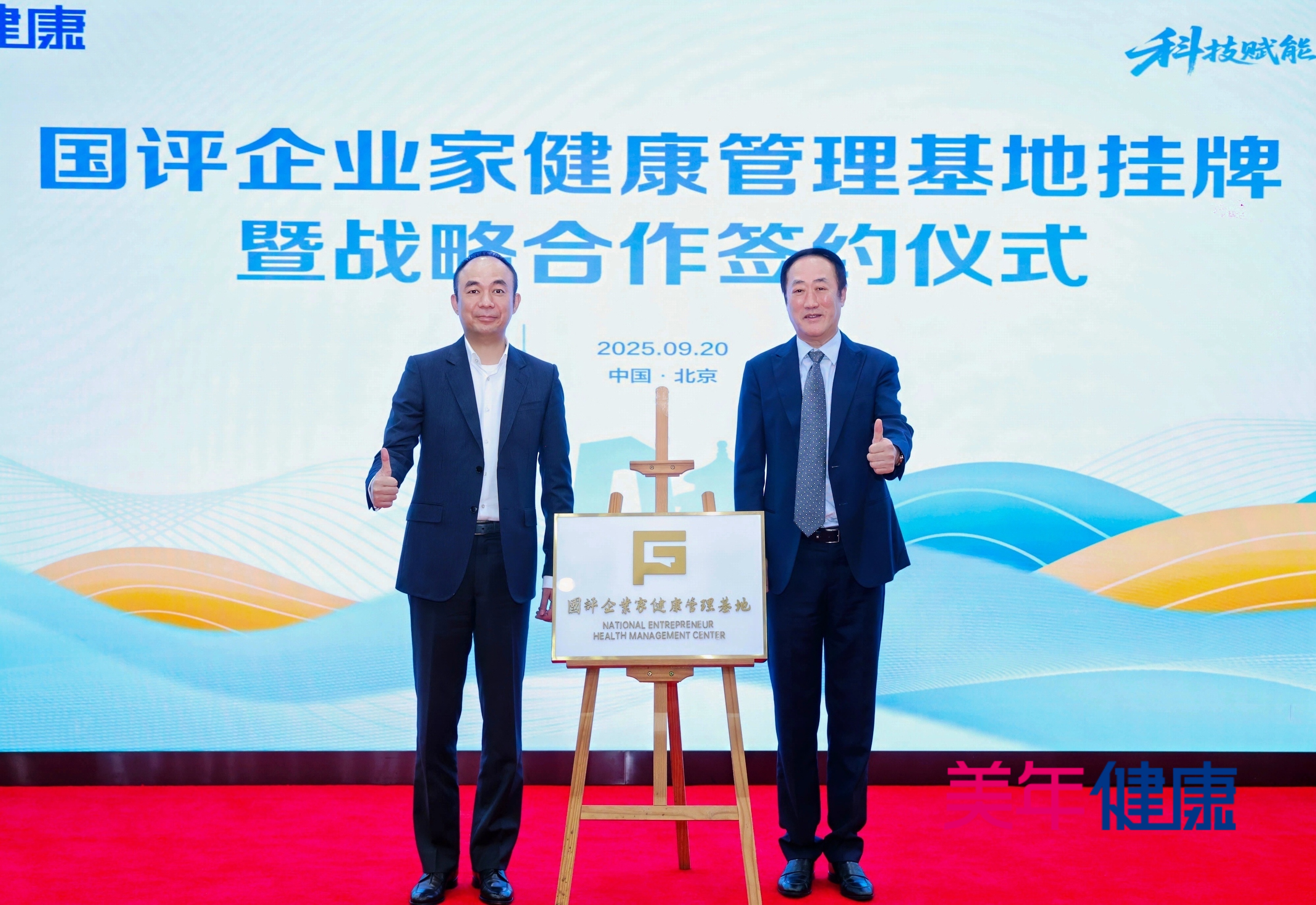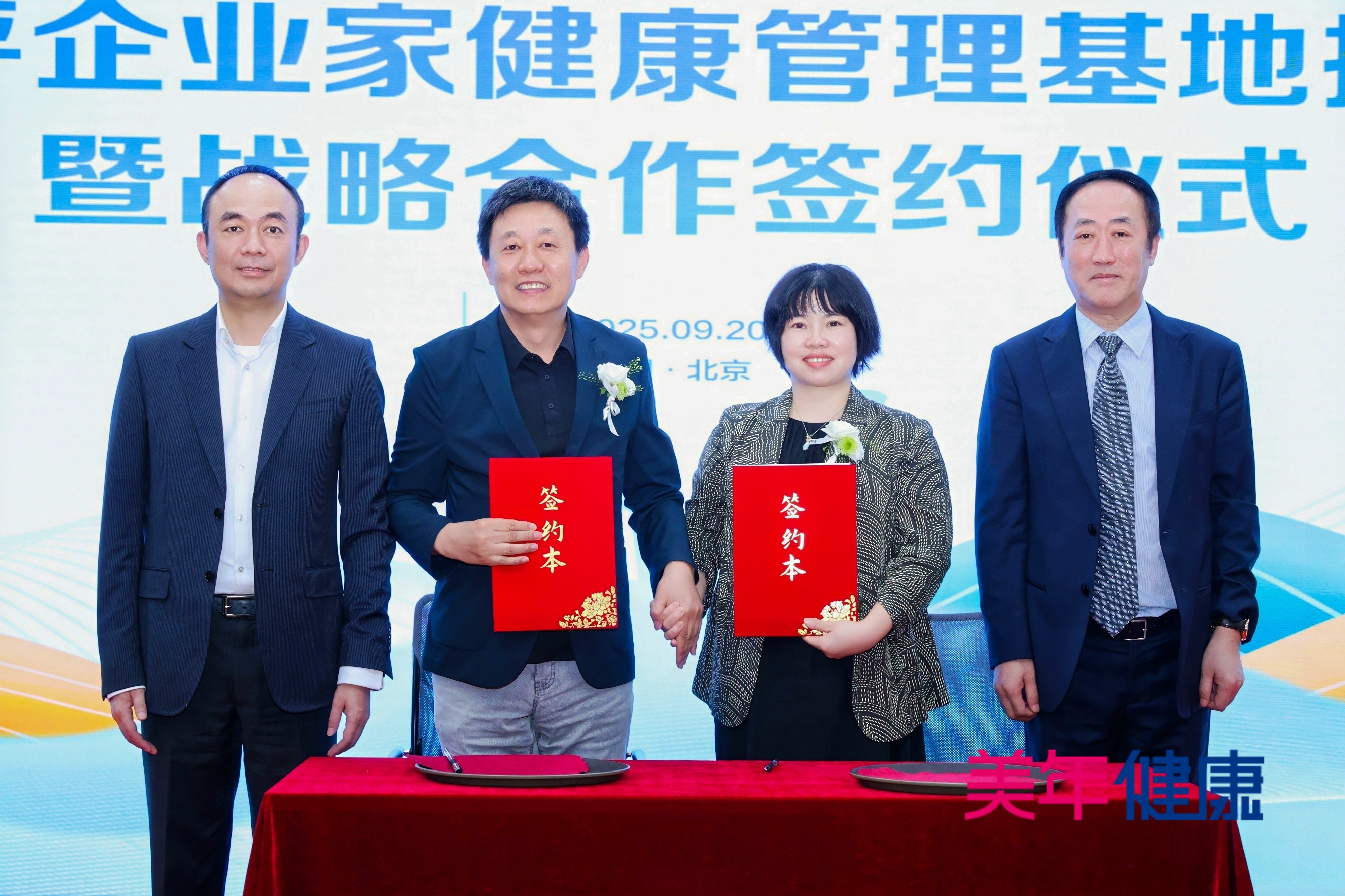 2025年9月20日,美年健康集團與北京國評創新醫療科技有限公司在北京聯合舉辦“國評企業家健康管理基地掛牌暨戰略合作簽約儀式”。本次活動以“科技賦能,健康領航”為主題,旨在搭建一個融合科技力量、專業醫療資源與企業服務需求的健康管理平臺,雙方將在健康體檢、慢性病康復、醫療保健、企業及個人會員健康管理服務領域展開戰略合作。來自北京各大三甲醫院的全國著名專家學者以及數十位企業家共同見證了這一重要時刻。