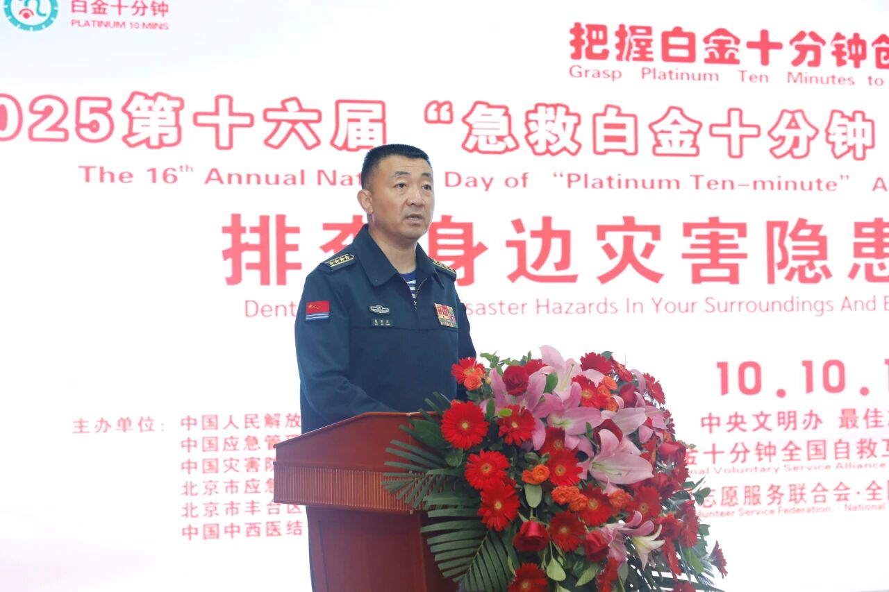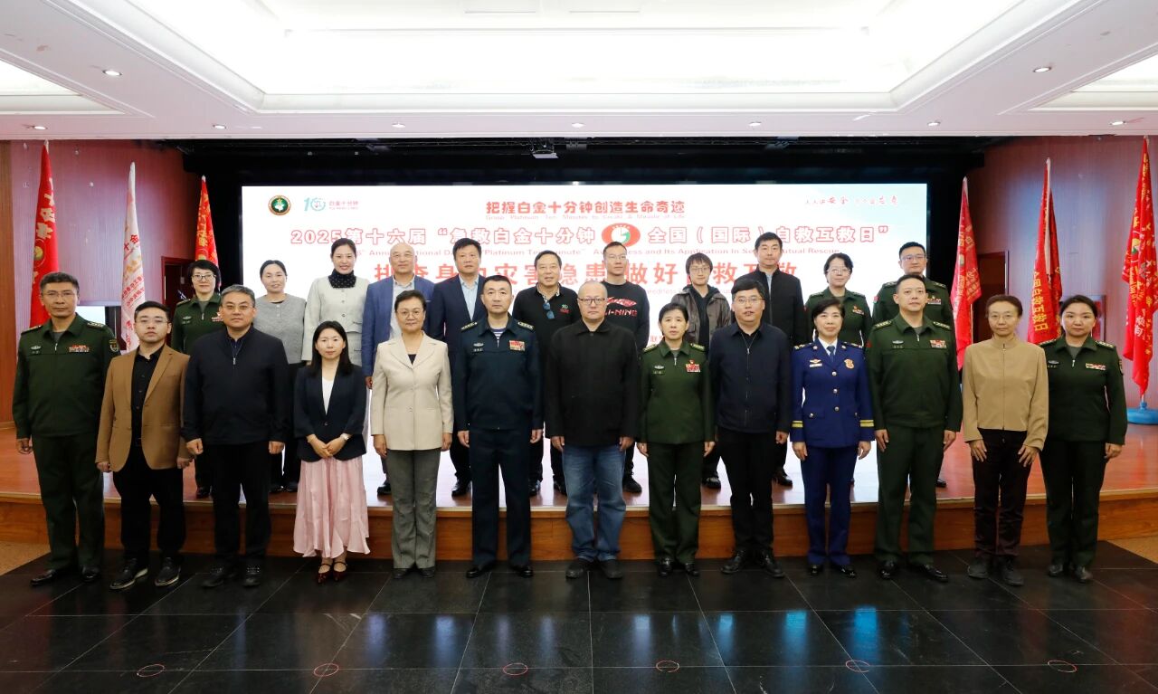 中國網訊 10月10日是全國自救互救日,9日上午,第十六屆“急救白金十分鐘全國(國際)自救互救日”啟動儀式,在解放軍總醫院第四醫學中心舉辦。這項影響深入、參與廣泛的活動,由解放軍總醫院第四醫學中心、首都醫科大學附屬北京中醫醫院、中國應急管理學會科普工作委員會、中國紅十字會總會賑濟救護部救護處、《中國志愿》雜志社、國家消防救援局特種災害救援司、應急管理部宣傳教育中心、中國災害防御學會科普教育培訓分會、北京市應急管理局宣傳動員處、北京眾安公益基金會、《勞動保護》雜志社、北京市退役軍人局豐臺30干休所、海淀區八里莊街道辦事處、北京志援應急救援隊的領導和嘉賓以及第六醫學中心、空軍特色醫學中心、北京大興區人民醫院、北京樂普養老院、朝陽區將臺社區衛生服務中心的專家共同啟動。主題為“排查身邊災害隱患做好自救互救”。中心領導勉聞光、孔春、李博和朱才眾、王琳、王辰允等參加了活動。會議由中心領導李博主持。